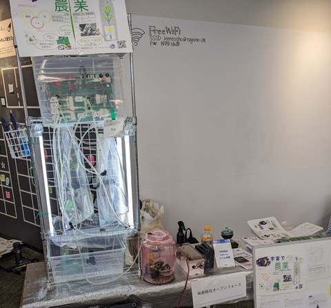 Oshwc2026AkihabaraFall-展示8 March 16, 2026 武将猛牛 宇宙植物栽培のための発芽苗育成試験 宇宙ステーションや宇宙船向け植物栽培モジュールを想定した、食用植物水耕栽培システムの発芽から苗まで育成した経過展示。